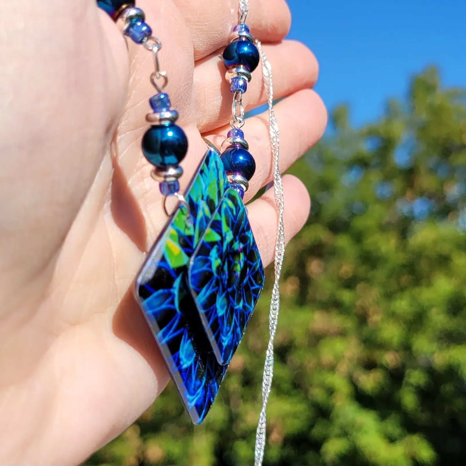 I created the pendant using photography and resins. Reversible pendant.